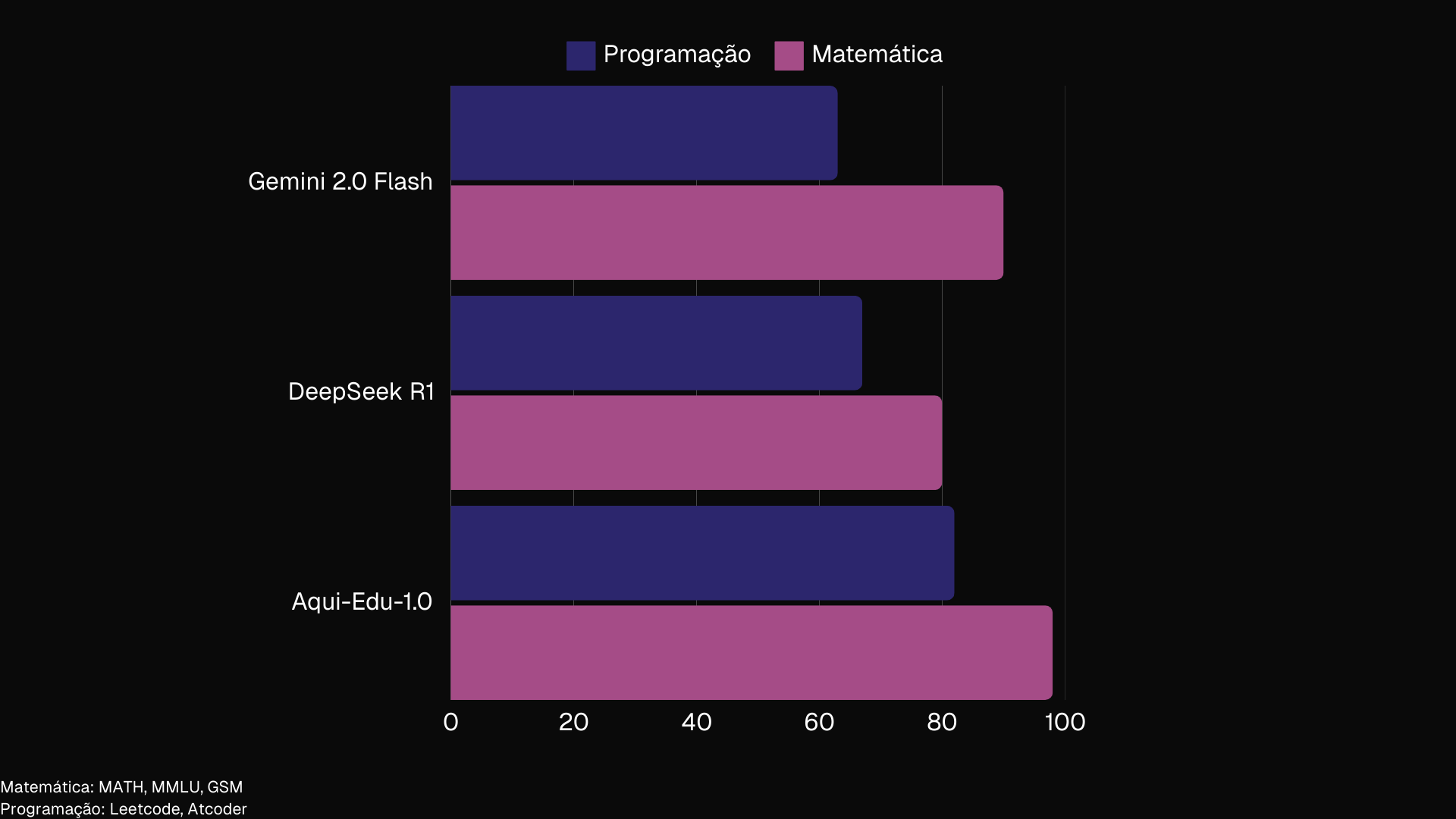 Em benchmarks, o aqui-edu-1.0 supera modelos como o DeepSeek R1, Gemini 2.0 Pro e o3-mini.